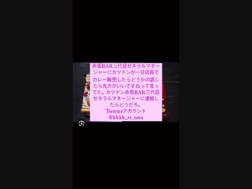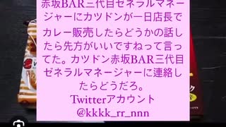 23/08/15 赤坂BAR三代目ゼネラルマネージャーにカツドンが一日店長でカレー販売したらどうかの話したら先方がいいですねって言ってた。