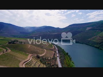 三好多加也 Train driving along Douro river and vineyard terraces in Portugal