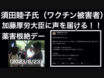 須田睦子(すーさん)が、加藤厚労大臣に声を届ける。【コロナワクチン被害者遺族】薬害根絶デーにて(2023/8/24)