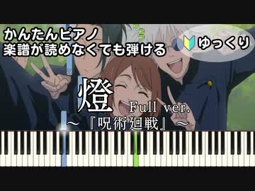 【燈】Full ~呪術廻戦ED~ 楽譜が読めなくても弾ける 簡単ピアノ 初心者向け ゆっくり練習用 フル 第2期「懐玉・玉折」崎山蒼志 "AKARI" for piano beginners