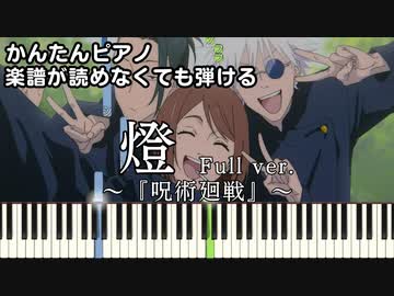 【燈】Full ~呪術廻戦ED~ 楽譜が読めなくても弾ける 簡単ピアノ 初心者向け フル 原曲テンポver. 第2期「懐玉・玉折」崎山蒼志 "AKARI" for piano beginners