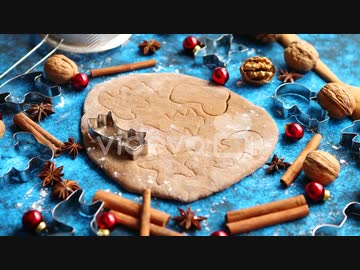 Christmas baking concept Gingerbread dough with different cutter shapes