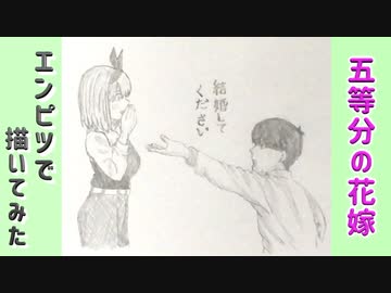 「五等分の花嫁 上杉風太郎/中野四葉」還暦男がHB鉛筆1本で描いてみた。