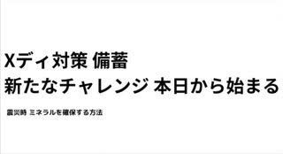 Xディ対策 備蓄 新たなチャレンジ 本日から始まる 震災時でも新鮮なミネラル確保