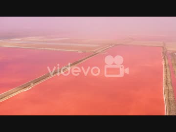 Beautiful aerial over bright red and pink salt pan farms near Walvis Bay Namibia