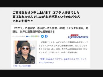 ご冥福をお祈り申し上げます コブラ 大好きでした 裏は取れませんでしたが 心筋梗塞というのはやはり あれの影響かと