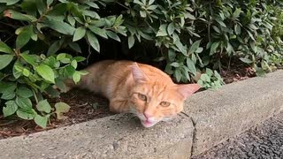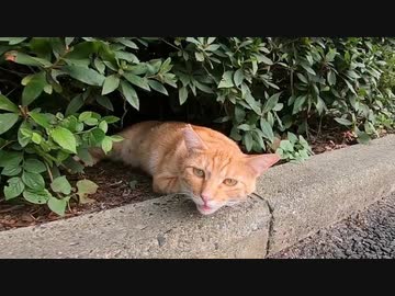 茂みから茶トラ猫が顔を出していたのでナデナデしたら三毛猫もやって来た