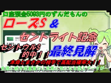 口座預金5093円のずんだもんのローズS&セントライト記念 予想