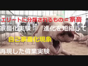 家畜化実験 家畜化の進化を超短縮で再現した偉業 見えてきたもの自己家畜化現象ー恐怖反応も野生動物にくらべて著しく低下遅延にぶい 家畜とは支配するものにとってコントローラブルである事だ