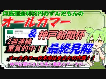 口座預金4593円のずんだもんのオールカマー&神戸新聞杯 予想