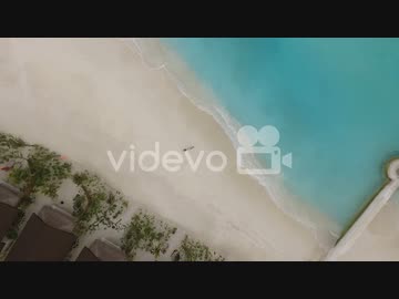 A girl laying on the beach shore of a Maldives Island, blue water and green vegetation