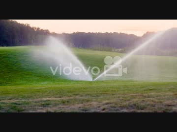 Medium Shot Of Grass Sprinkler Splashes Water Over The Lawn