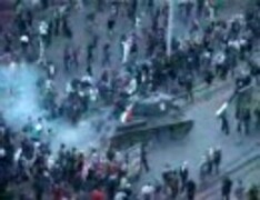 第二次世界大戦の戦車T-34にタンクデサントするデモ隊(2006年10月)