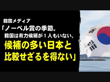 韓国メディア「ノーベル賞の季節。韓国は有力候補が1人もいない。候補の多い日本と比較せざるを得ない」