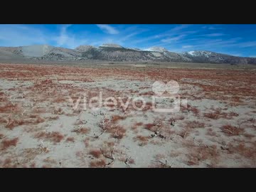 Beautiful aerial shot over red sagebrush reveals the Mono volcano cones