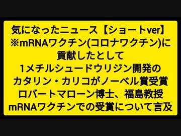気になったニュース【ショートver】※mRNAワクチン(コロナワクチン)に貢献したとして1メチルシュードウリジン開発のカタリン・カリコがノーベル賞受賞