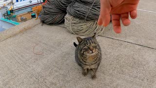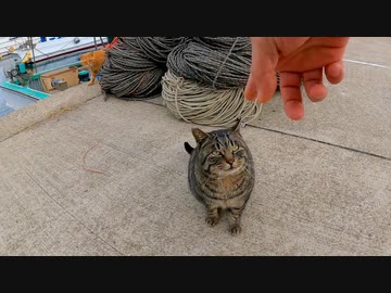 漁港でキジトラ猫を撫でると他の猫も集まってきた