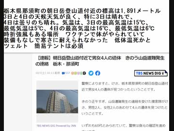 ツェルト 簡易テントは必須 ワクチンで体がやられていて 装備もなしで寒さに耐えられなかった 低体温死かと 朝日岳登山道付近で男女4人の遺体