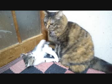成猫と対等にやり合う仔猫ちゃん