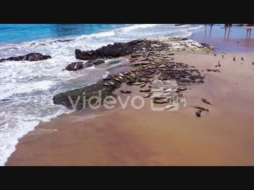 Aerial Seals Pelicans Bask In A Rookery On The Beach Near Carpinteria Bluffs