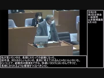 避難情報が出ているにも関わらず、避難者を自宅へ帰るよう促してしまい、石丸市長と米村副市長に怒られてしまう山本数博議員