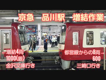 《京急》品川駅 夕方ラッシュ時の増結シーン 1000形ステンレス+600形