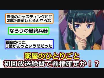 なろう最終兵器『薬屋のひとりごと』、初回3話一挙放送で覇権か【アニメスレ】【反応集】【2ch】