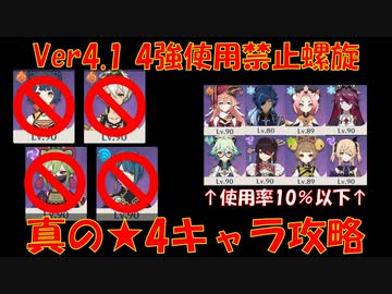 【原神】星4キャラ 四強抜き(使用率10%以下のみ)でVer4.1螺旋星9クリア 【真の星4螺旋攻略】【げんしん】