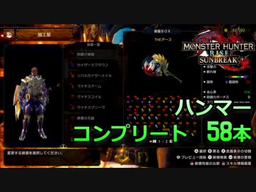 【MHサンブレイク スイッチ版】生産ハンマー58本コンプリート 「ただ見せるだけの動画」