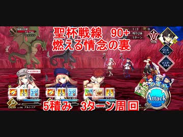 【FGO】2023 聖杯戦線 白天の城、黒夜の城 変則クエスト 90+ 燃える情念の裏 5積み 3T周回 攻略動画