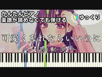 【可愛くなれたらいいのに】~feat. かぴ~ 楽譜が読めなくても弾ける 簡単ピアノ 初心者向け 初級 ゆっくり練習用『ちゅーたん』"HoneyWorks" for piano beginners