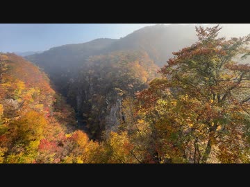 宮城を代表する紅葉スポット 鳴子峡 大深沢橋からの風景(8時頃) 2023 1103