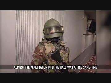 ホモと見る劇場占拠の現場を案内するアルファ部隊の隊員(ロシア)