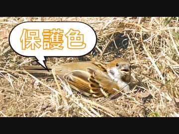 スズメの砂浴び