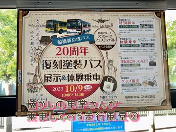 船橋新京成バス 20周年復刻塗装バス体験乗車 懐かしの車掌さんが乗車している走行風景②