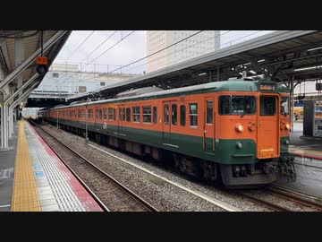 115系D-26編成(湘南色)+D-29編成 岡山駅3番線発車
