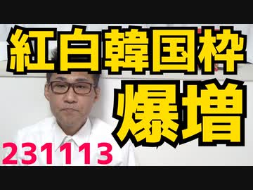 NHK紅白、韓国枠が6に爆増し最低視聴率確実にジャニーズ枠は消滅/神田財務副大臣、脱税と資産公開法違反の疑い浮上、副大臣更迭/男子校の女装ミスコンにフェミが噛み付く、じゃ歌舞伎はどーすんの231113