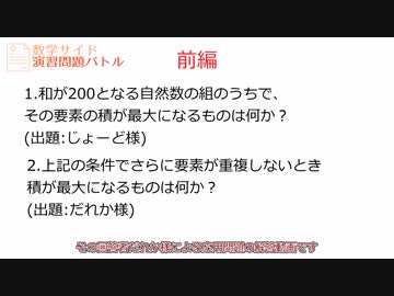 【演習問題バトル解答】和が200となる自然数の組の内積が最大となるものは何か?【前編】