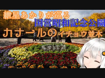 紲星あかりが巡る昭和記念公園、カナールのイチョウ並木(東京都立川市)