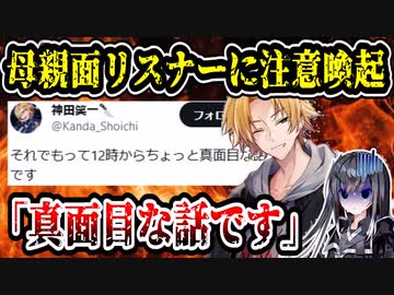にじさんじ神田笑一、母親面リスナーに注意 「どうしても受け入れられない」