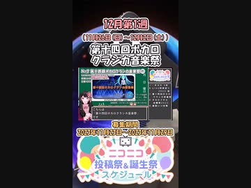 【#ニコニコ投稿祭】7/16『#第十四回ボカロクラシカ音楽祭』12月第1週のニコニコ投稿祭&誕生祭スケジュールを知ろう【#COEIROINK解説】#VOCALOID #ボーカロイド #ボカロ