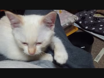 拾いねこ@生後4127日目Part3 膝上でリラックスするユキ君。