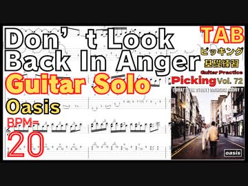 Oasis - Don’t Look Back In Anger ギターソロ 楽譜 オアシス練習 BPM20【Guitar Picking Vol.73】