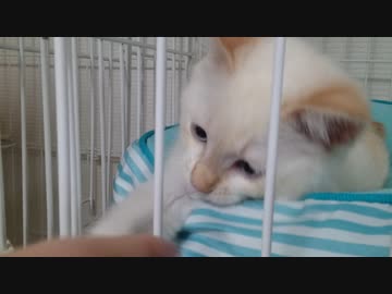 拾いねこ@生後4129日目Part2 ケージ越しのお見合い。