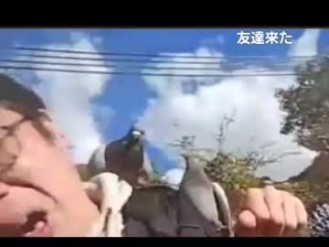 【シケキノコ】ブドウパンを分け与えない腹いせで、鳩に仲良しを見せつけられた挙句、スマホを蹴り倒され、耳を啄まれる
