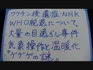 ・気象兵器と温暖化・ワクチン後遺症・WHO脱退・大量の目逸らし事件…など。