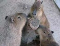木の枝をかじり、戯れるカピバラさん