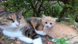 公園の野良猫親子を見ると癒やされる