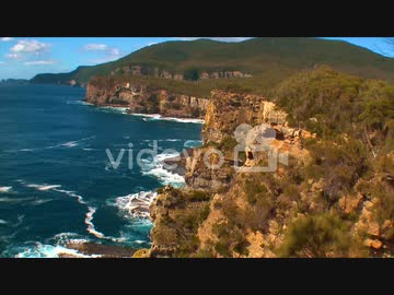 Zoom out from coastal sedimentary cliffs in Tasmania Australia