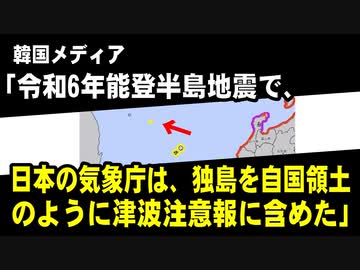 韓国メディア「能登半島地震で、日本の気象庁は、独島を自国領土のように津波注意報に含めた」